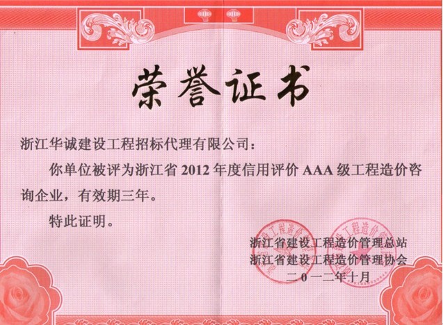 2012年10月造價(jià)咨詢企業(yè)信用AAA級