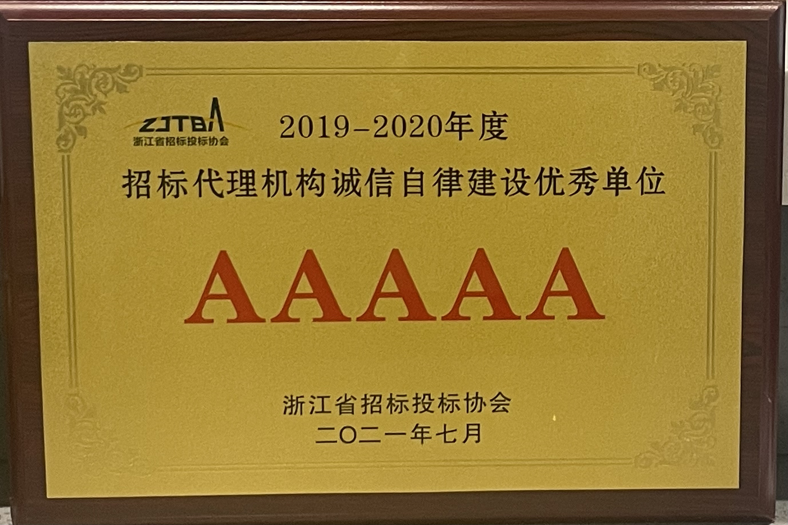 2019-2020年度招標(biāo)代理機(jī)構(gòu)誠信自律建設(shè)優(yōu)秀單位5A